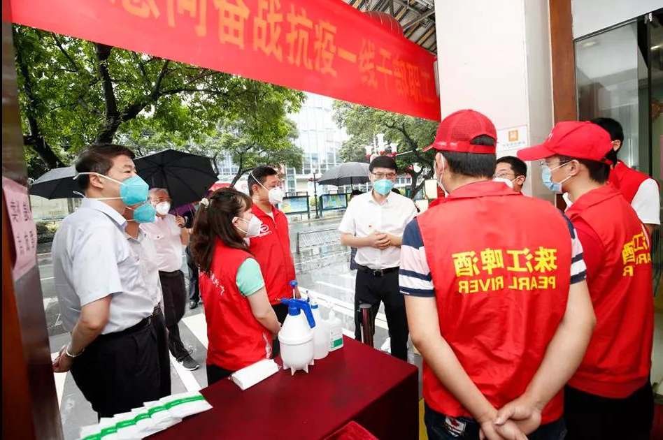 陈浩钿与珠江酒抗疫新科组员十分亲切沟通,深入调查了解组员们的交接社区服务培训站、这段时间服务培训信息、归属行政部门主岗等。看到珠啤资产8名同志自6月1日起持续在荔湾区白鹤洞街道(高风险区)服务2周,陈浩钿对先锋队给予了充分肯定。陈浩钿向广大国企干部职工表示衷心的感谢:“各位国企先锋队员勇挑重担、肩负使命,第一时间冲锋在抗疫一线,为荔湾封闭区域十多万居民倾情服务、传递温暖,充分展示了广州国企干部职工的风采,希望大家保护好自己,端午安康,凯旋归来!”