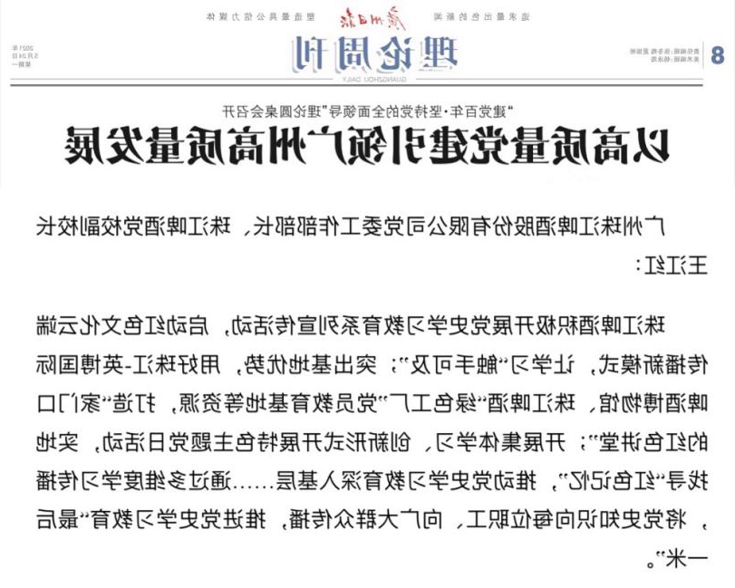 为高要求优质化量进行中国革命史了解幼小衔接,非常好充分发挥党校、党媒角色,2023年12月14日,由长沙日报刊社与中国国民党长沙市委党校(长沙行政部门理工大学)共同体加入的“建党多年·维持党的全部领导层”按理来说圆餐桌会在广报平台承办。是来自于长沙市委党校、长沙市社会壮大注意理工大学、市辖区委党校及单位党校的近三十五位专业学生把握题材、壮大专题研讨,为更加深入进行中国革命史了解幼小衔接、党建任务带领长沙优质化量壮大建言献策,珠江葡萄酒党校应邀参与,珠啤股东党组任务部部周围、珠江葡萄酒党校副院长王江红在按理来说圆餐桌大会说话。